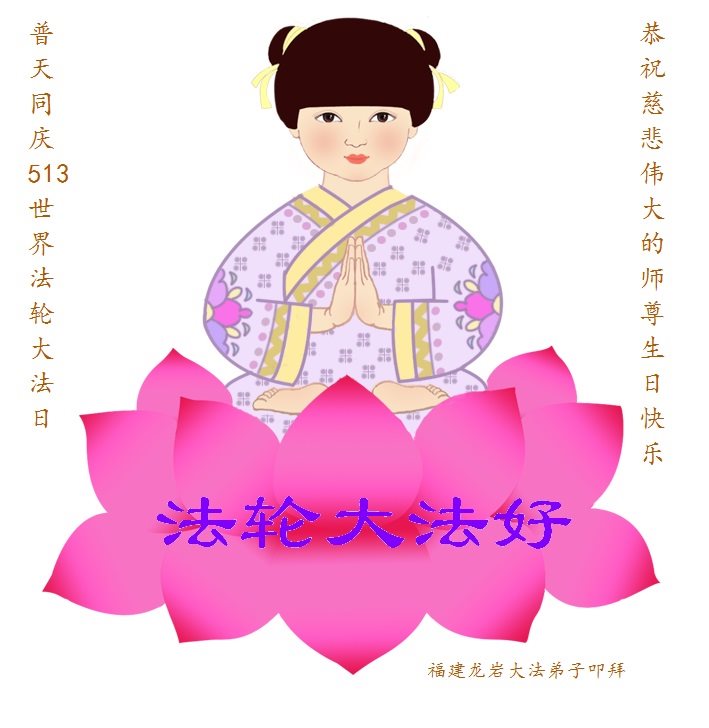 普天同庆、同祝、同颂法轮大法洪传世界二十五周年!师父您好!师父的佛恩浩荡、师父苦度弟子之恩无以言表,唯有精進真修实修,唯有多学法、学好法,遇事向内找,彻底放下自我,修好自己,让生命在大法中升华、提高,做好三件事。弟子一定珍惜师父给弟子修炼机缘。师尊啊,您为大法弟子的修炼,为更多世人能救度,恩师操尽了心!师尊啊,弟子一定要走好师尊安排的修炼之路,直至法正人间,随师父回家。不辜负师父的期望!不辜负众生的期望! 福建龙岩市大法弟子恭祝师父生日快乐!