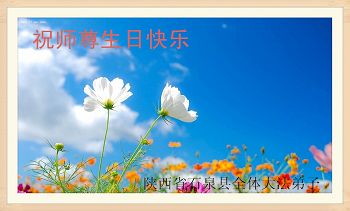 大法神圣 师父伟大 法徒慈悲 世人觉醒 陕西省咸阳市礼泉县全体大法弟子恭祝慈悲伟大的师尊生日快乐!祝贺513法轮大法日!