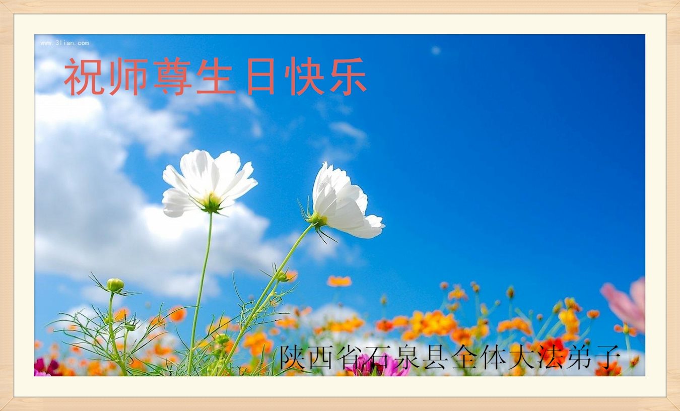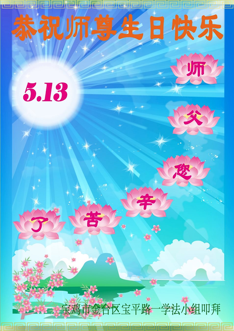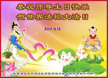【明慧网二零一七年五月十一日】 陕西宝鸡市一学法小组恭祝慈悲伟大的师尊生日快乐!