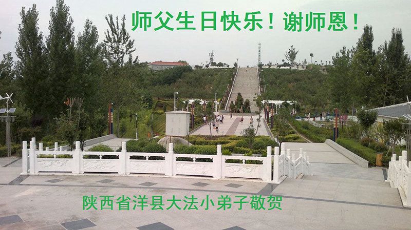 感谢师尊对所有大法弟子的慈悲呵护,对师尊的感恩之情溢于言表,在这伟大的日子里恭祝师尊生日快乐! 陕西杨凌全体大法弟子恭贺世界法轮大法日!