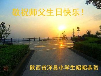 恭祝世界法轮大法日、祝师尊生日快乐!普天同敬、同祝、同颂! 祝全世界大法弟子节日快乐! 大陆陕西榆林大法弟子敬上 陕西省汉中市洋县明真相小学生恭祝师尊生日快乐!