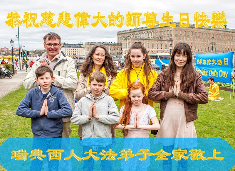 瑞典西人大法弟子全家恭祝慈悲伟大的师尊生日快乐!