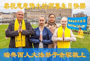 瑞典斯德哥尔摩一家四口大法弟子恭祝师父生日快乐!