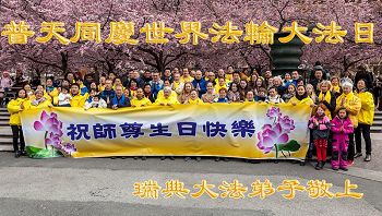 瑞典大法弟子庆祝世界法轮大法日!恭祝慈悲伟大的师尊生日快乐!