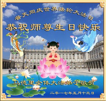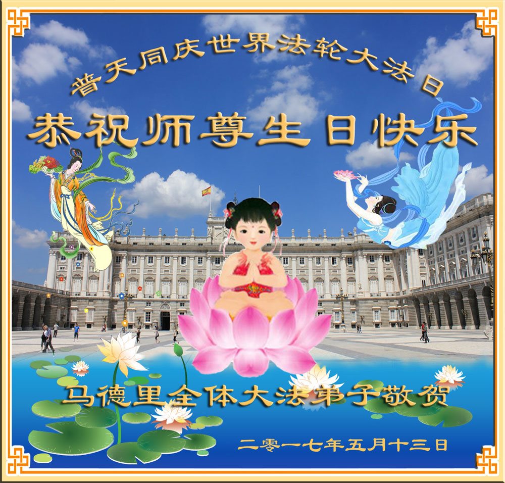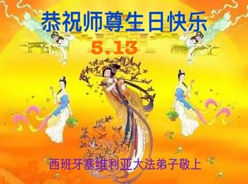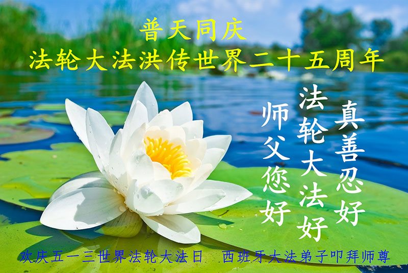 西班牙大法弟子恭祝师尊生日快乐!普天同庆法轮大法传世25周年!