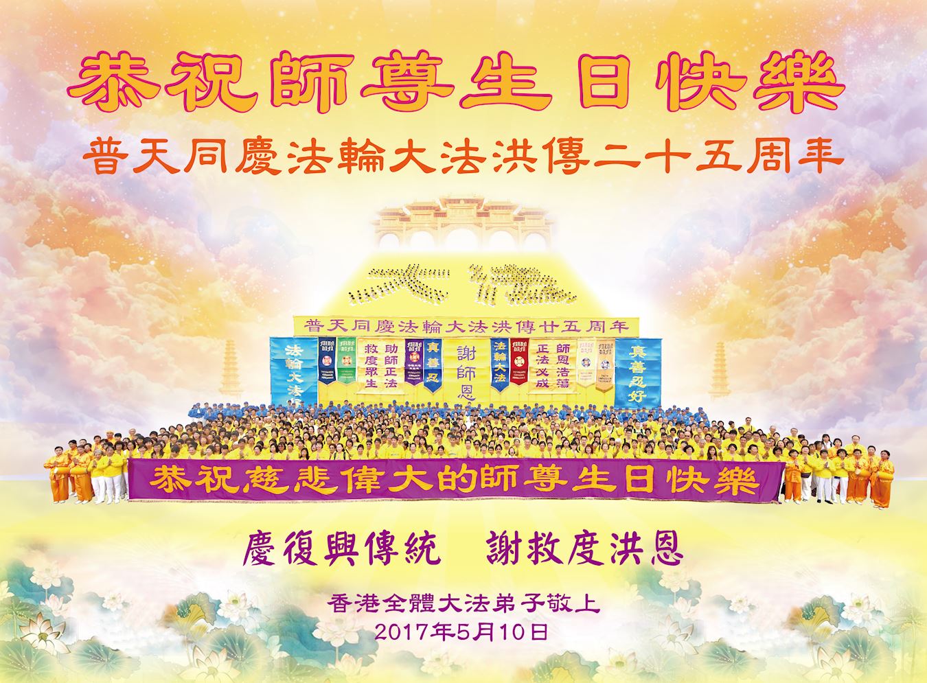 【明慧网二零一七年五月十二日】 香港全体大法弟子恭祝慈悲伟大的师尊生日快乐!