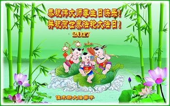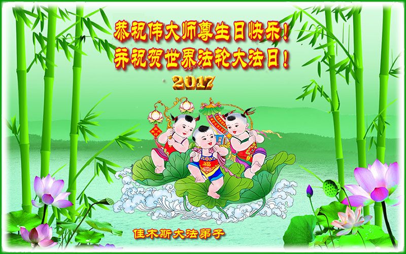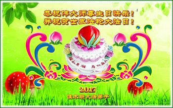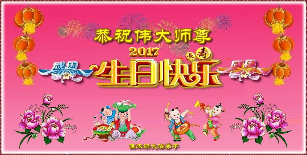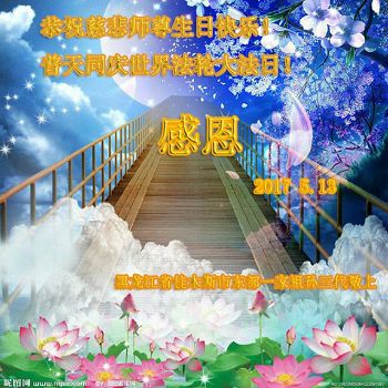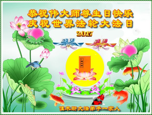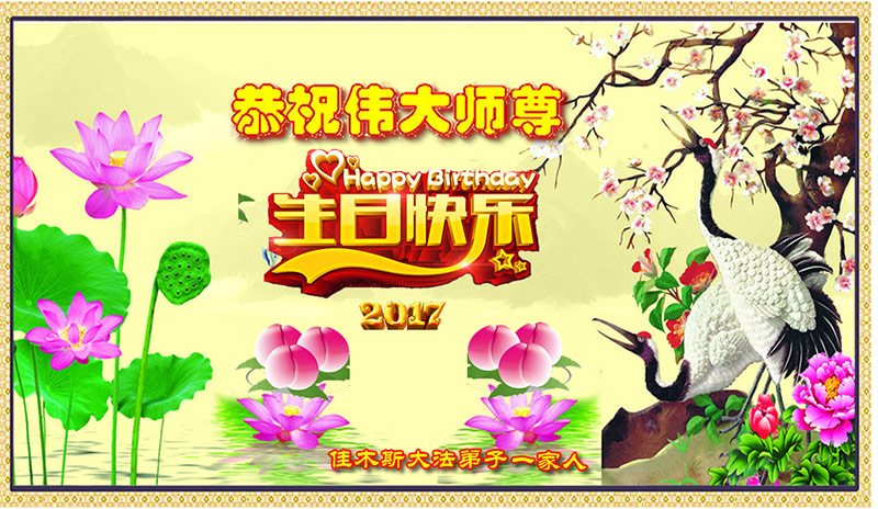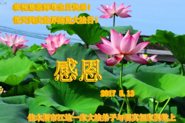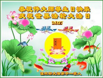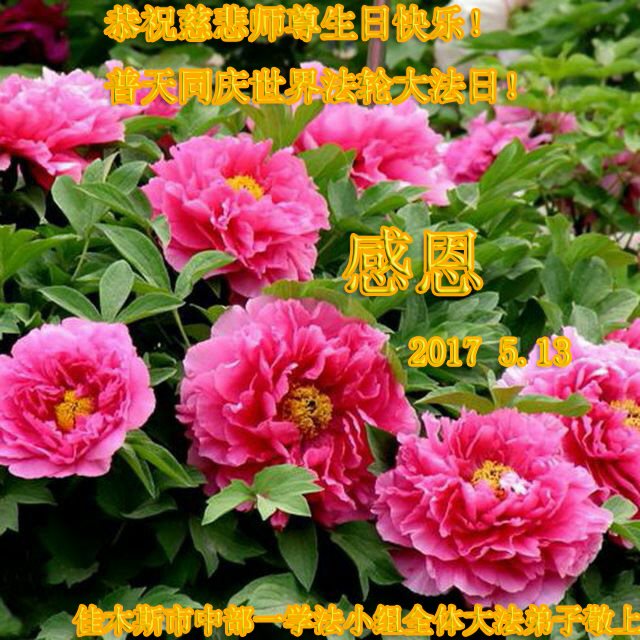 【明慧网二零一七年五月十二日】 黑龙江省佳木斯大法弟子一家人恭祝伟大师尊生日快乐!祝贺世界法轮大法日!