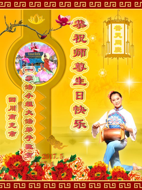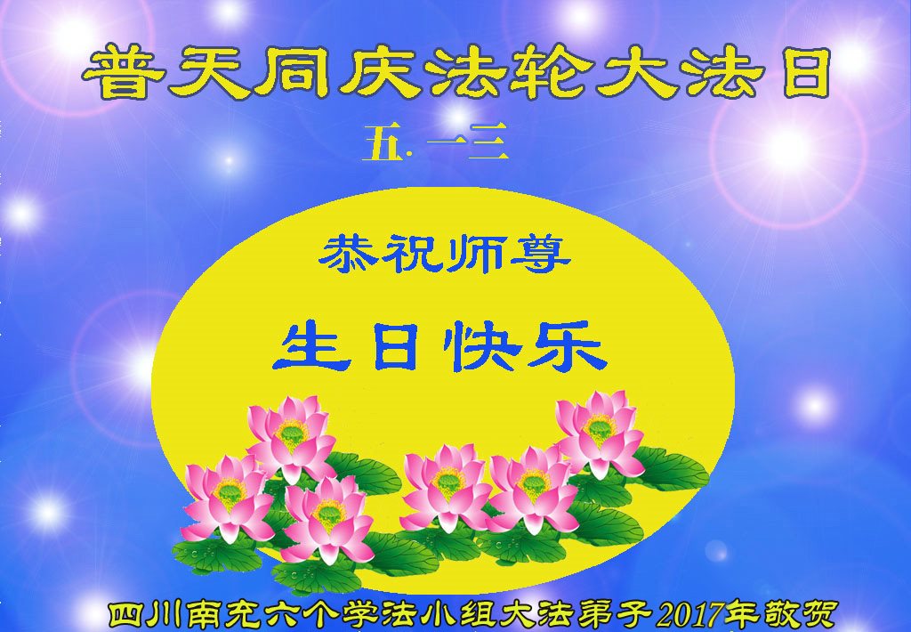 【明慧网二零一七年五月十二日】 四川南充全体大法弟子恭贺法轮大法日!