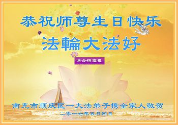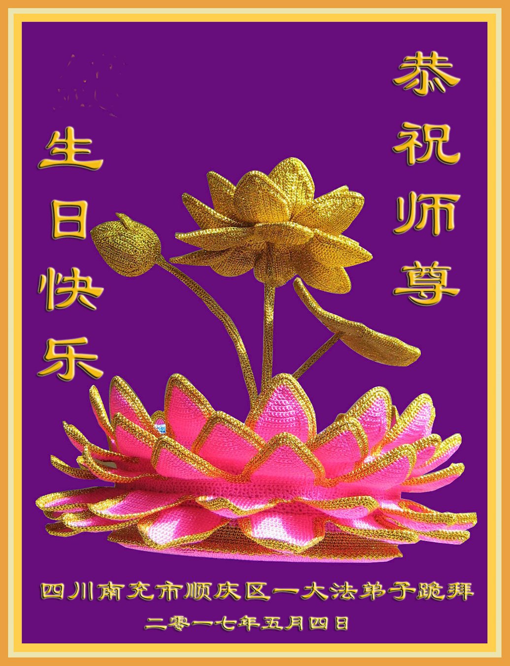 四川南充顺庆区一大法弟子恭祝慈悲伟大的师尊生日快乐!