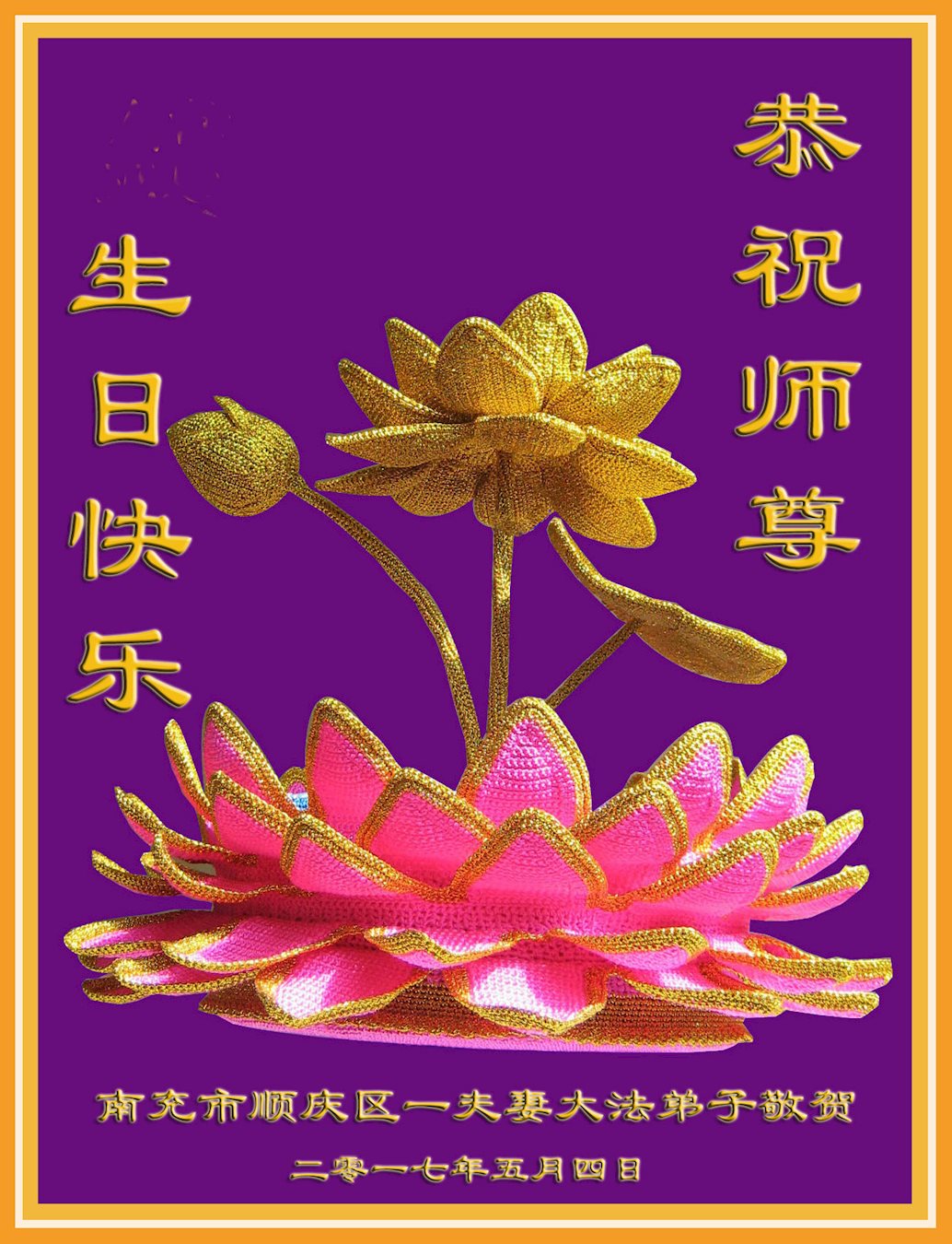 四川南充顺庆区一夫妻大法弟子恭祝慈悲伟大的师尊生日快乐!