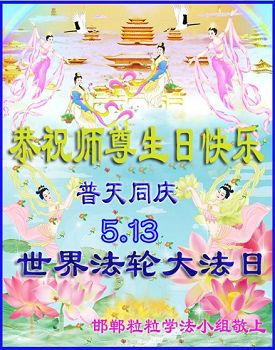 同祝同庆同颂法轮大法洪传二十五周年纪念日513! 河北省邯郸市一学法小组恭祝师尊生日快乐!