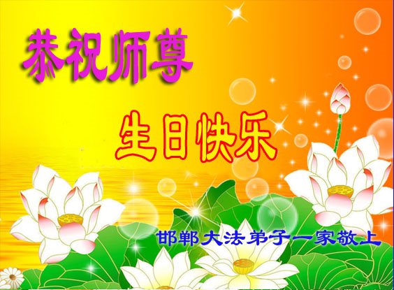 河北省邯郸市大法弟子一家恭祝师尊生日快乐!