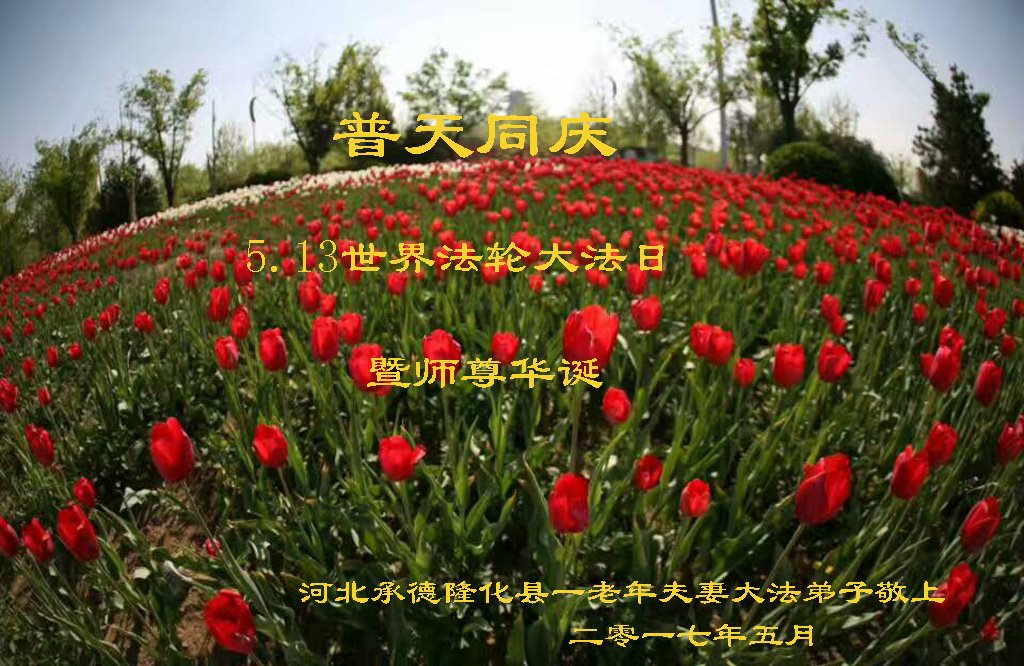 在普天同庆5.13世界法轮大法日和师尊华诞的大喜日子里,我们再次感恩师尊多年来的慈悲苦度和精心保护,弟子唯有精進再精進,实修自己,做好三件事,救度更多的众生,回报师恩。 河北承德隆化县一老年夫妻大法弟子 河北邯郸复兴区一学法组恭祝师尊华诞暨法轮大法日!