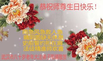 千言万语难以尽述师父的洪恩,唯有精進,做好三件事回报师恩。 湖北省武汉汉口大法弟子秀秀恭祝师父生日快乐!普天同庆法轮大法日!