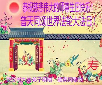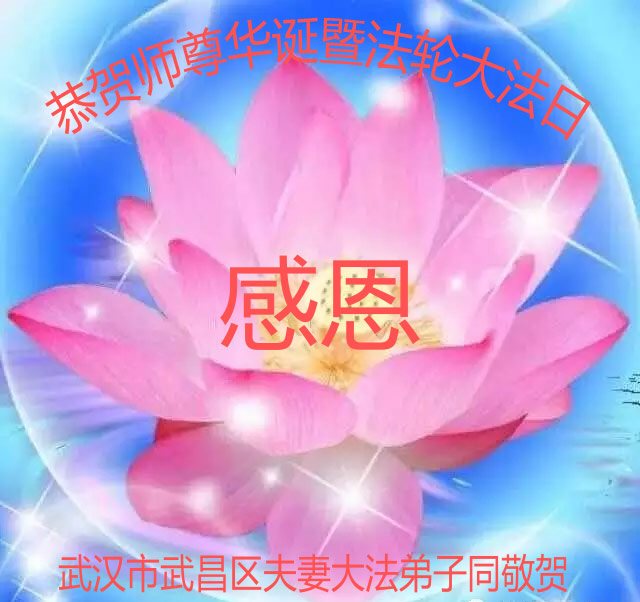 感恩师尊帮助弟子度过困苦与魔难,在今后的修炼路上抓紧学法,学好法,做好三件事。 湖北省武汉市武昌区夫妻大法弟子恭祝师尊华诞暨世界法轮大法日!