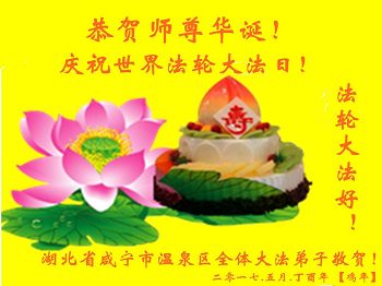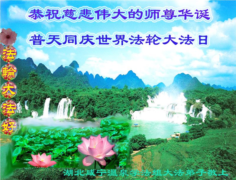 湖北省咸宁市温泉区全体大法弟子齐贺法轮大法日!恭祝师尊生日快乐!