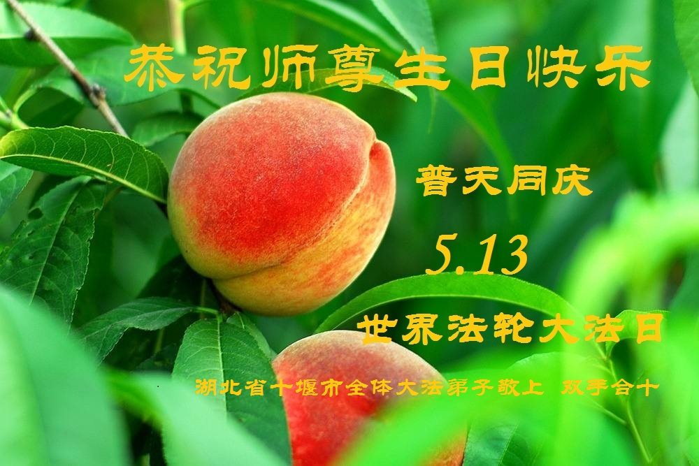 湖北十堰市大法弟子恭祝慈悲伟大的师父生日快乐!庆祝5.13法轮大法日!弟子跪谢师尊救度洪恩!