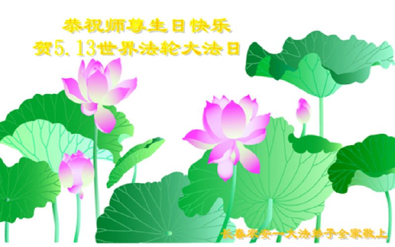 吉林省长春农安一大法弟子全家恭祝师尊生日快乐!恭贺世界法轮大法日!