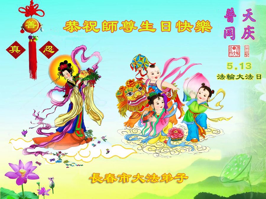吉林省长春大法弟子恭祝慈悲伟大的师尊生日快乐!普天同庆世界法轮大法日!