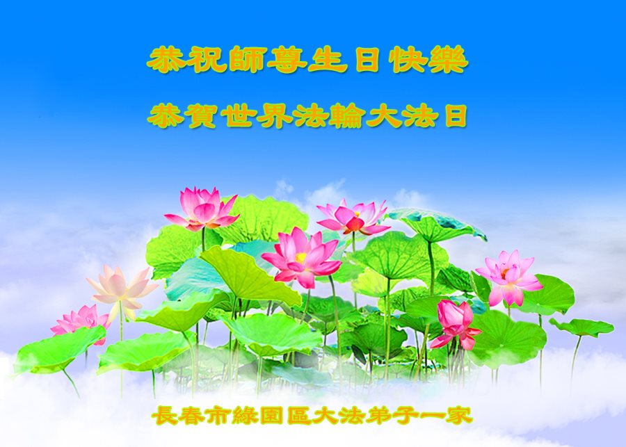 吉林省长春市绿园区二位大法弟子及家人祝师父生日快乐!恭贺世界法轮大法日。 吉林省长春大法弟子恭祝师父生日快乐!恭祝法轮大法日!