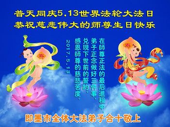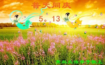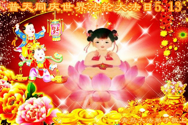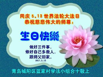 山东省青岛大法弟子恭祝师尊生日快乐!普天同庆世界法轮大法日!