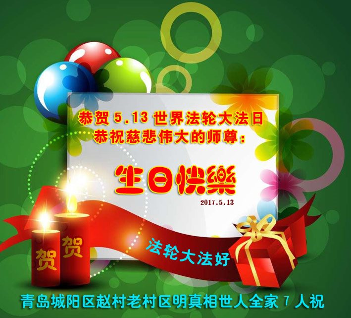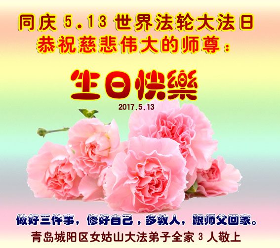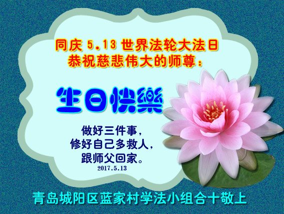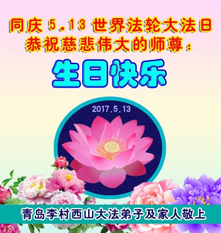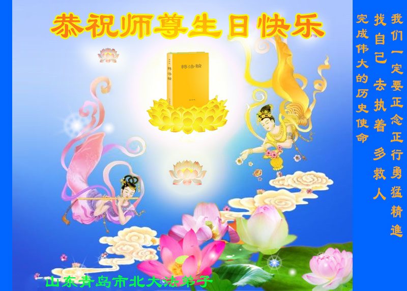 山东省青岛大法弟子恭祝师尊生日快乐!
