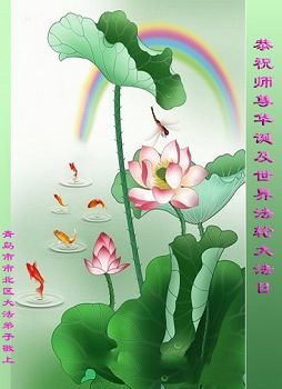 我们一定要正念正行,勇猛精進,找自己、去执着,多救人,走好走正最后的修炼路,完成伟大的历史使命。 山东省青岛市市北区大法弟子恭祝师尊华诞暨世界法轮大法日!