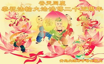 山东省青岛大法弟子恭祝师尊生日快乐!普天同庆法轮大法洪传二十五周年!