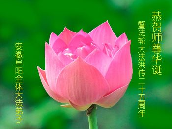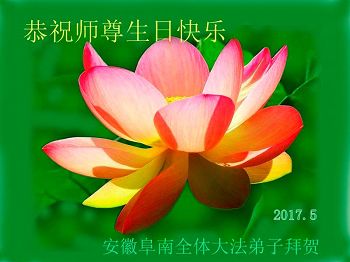 【明慧网二零一七年五月十二日】 安徽阜阳全体大法弟子恭祝慈悲伟大的师尊生日快乐!恭贺法轮大法洪传二十五周年!