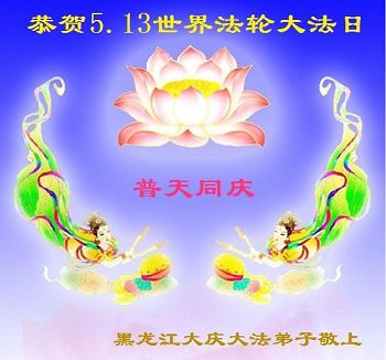 黑龙江大庆一家大法弟子恭贺5.13世界法轮大法日!
