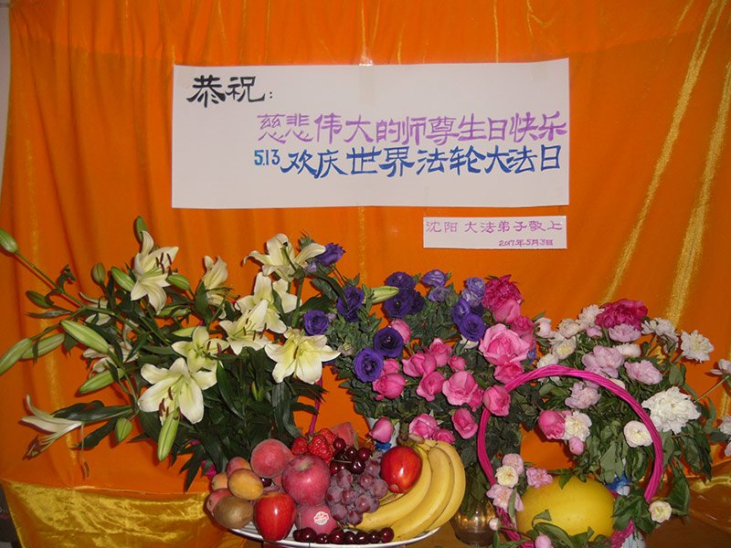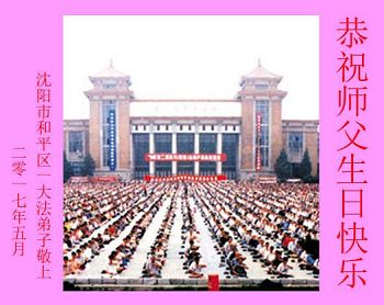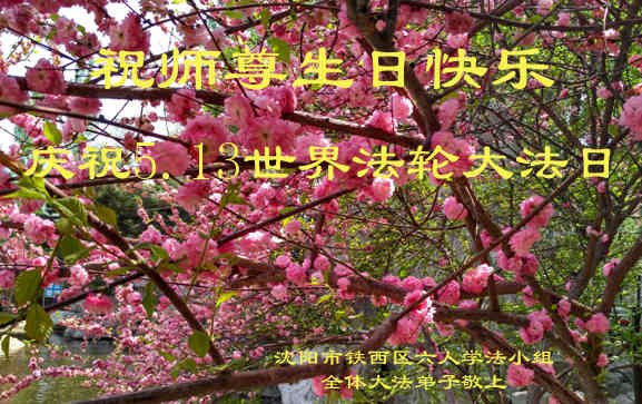辽宁省沈阳大法弟子恭祝慈悲伟大的师尊生日快乐!欢庆世界法轮大法日!