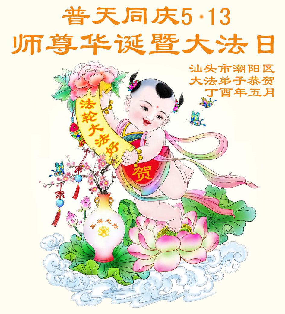 广东汕头潮阳区大法弟子恭贺师父华诞暨法轮大法日!