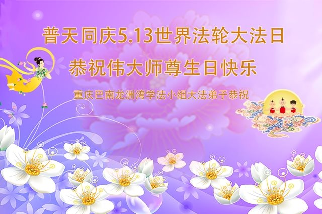 【明慧网二零一七年五月十二日】 重庆市巴南区鱼洞兴隆学法小组全体大法弟子恭祝师尊生日快乐!同庆世界法轮大法日!