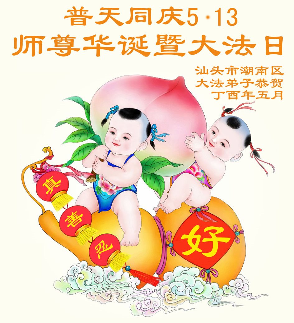 广东汕头潮南区大法弟子恭贺师父华诞暨法轮大法日!