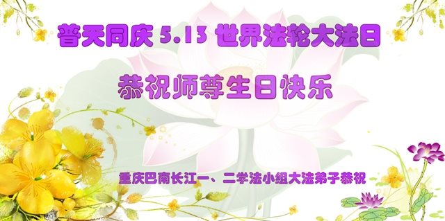重庆市巴南区长江一、二学法小组全体大法弟子庆祝世界法轮大法日!恭祝师尊生日快乐!