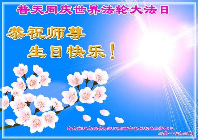 在此喜庆佳节,感恩师尊慈悲苦度,更加要努力做好三件事,报答恩师。 山东省青岛红岛经济开发区邵哥庄学法小组全体大法弟子恭祝师尊生日快乐!