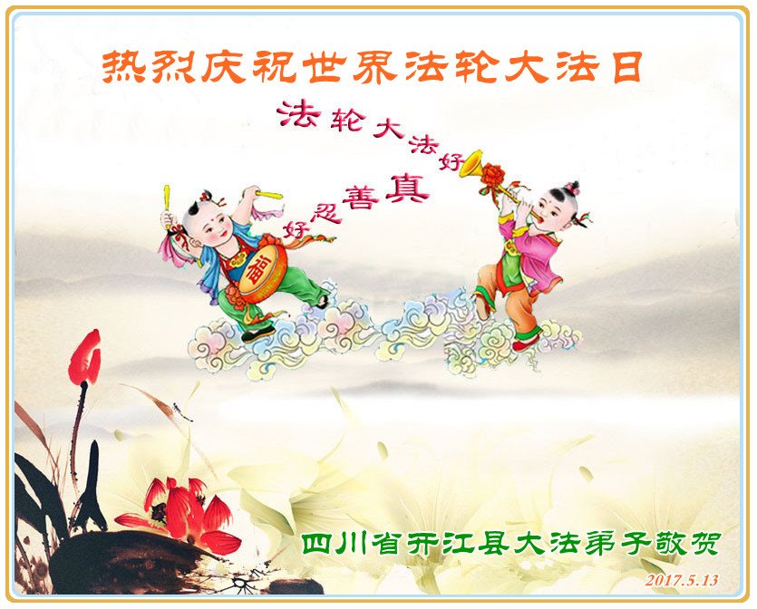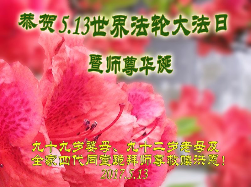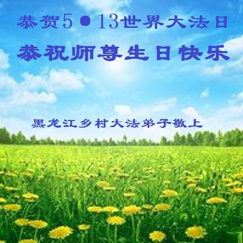 【明慧网二零一七年五月十二日】 黑龙江乡村大法弟子恭贺5.13世界法轮大法日!恭祝慈悲伟大的师尊生日快乐!