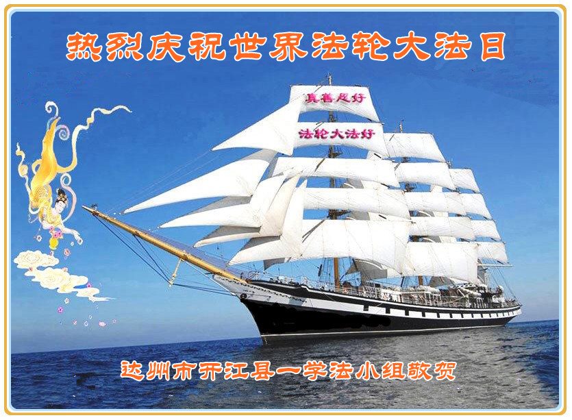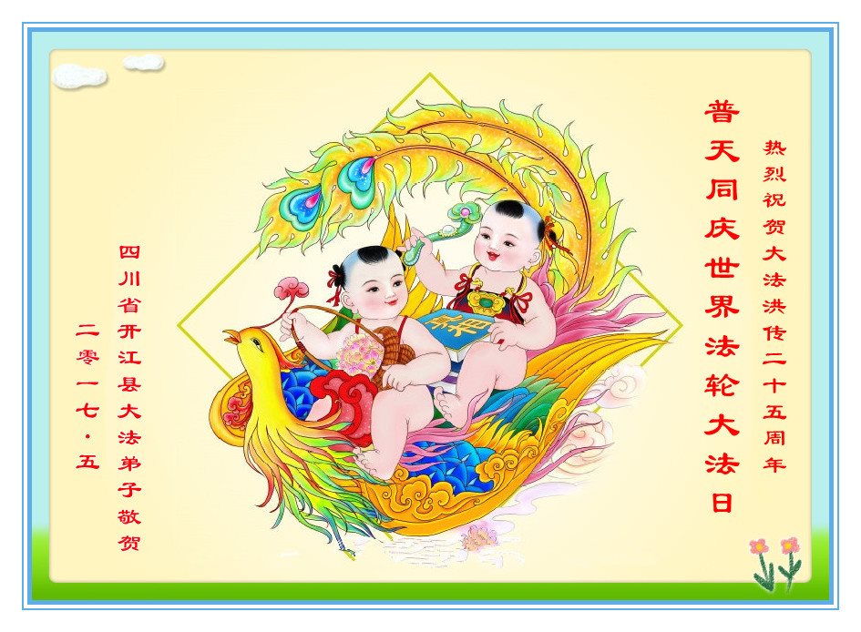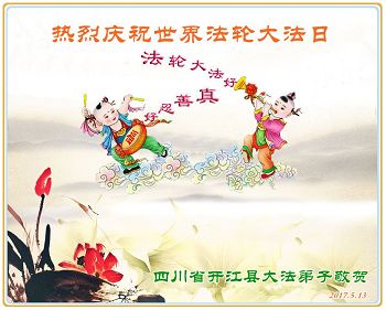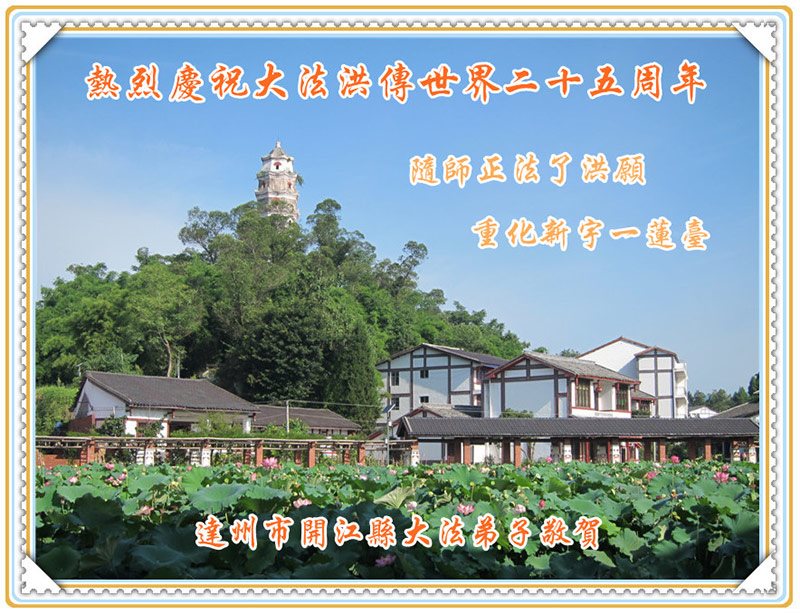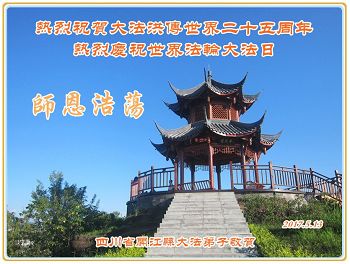 我们全家万分感激师父的慈悲救度与保护。尽管我们修的不好,但我们坚信大法好,我们一定坚修法轮大法到底。也请师父加持。今后我们一定更加勇猛精進,做好三件事,让更多的人明白真相得救。 四川省达州市开江县大法弟子热烈祝贺大法洪传二十五周年!普天同庆世界法轮大法日!