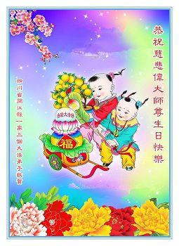 四川省资阳一大法弟子全家恭祝师父生日快乐!恭贺世界法轮大法日!