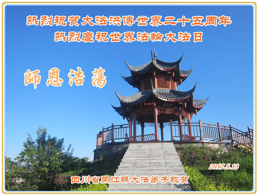 在此叩谢师尊为我们辛苦付出的慈悲救度!惟愿师尊笑!请师父放心,我们一定在最后形成整体,共同精進,真正的维护好大法,共同走好最后的神圣的正法修炼之路,直到功成圆满!伟大慈悲的恩师您辛苦了! 四川省达州市开江县大法弟子热烈庆祝大法洪传世界二十五周年!