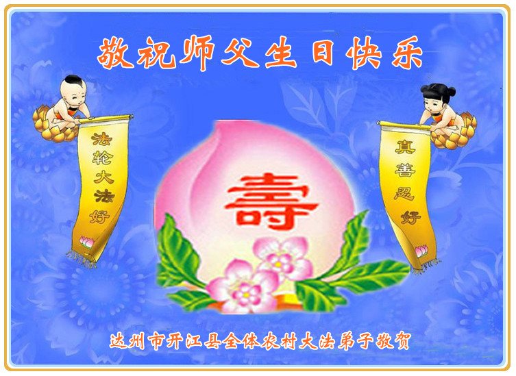 感恩师尊的慈悲救度。在师尊为弟子延长的时间里,一定要学好法,修好自己,多救人圆满随师还。 四川省达州市开江县全体农村大法弟子敬祝师父生日快乐!
