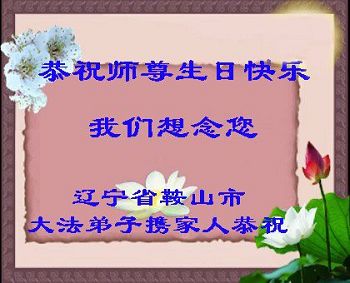【明慧网二零一七年五月十二日】 辽宁鞍山大法弟子携家人恭祝师尊生日快乐!