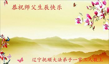 弟子谨记师尊教导,精進实修,做好三件事,圆满随师还。 辽宁抚顺大法弟子一家三人恭祝师父华诞快乐!