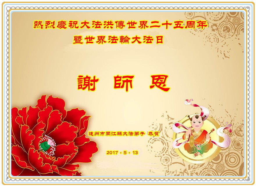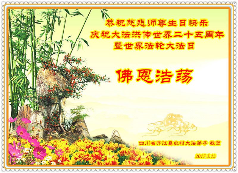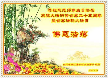 四川省达州市开江县农村大法弟子恭祝慈悲师尊生日快乐!庆祝大法洪传二十五周年暨世界法轮大法日!