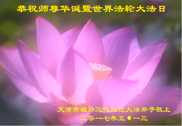 天津市一家祖孙三代三位大法弟子恭祝师尊华诞!与全世界大法弟子同庆世界法轮大法日!