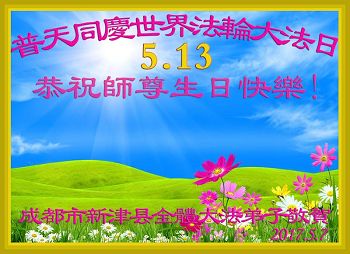 四川省成都市新津县全体大法弟子恭贺5.13世界法轮大法日!恭祝慈悲伟大的师尊生日快乐!