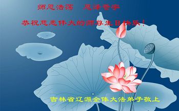 感恩师尊多年保护,走过二十一年修炼历程。唯有精進更精進,报答师尊救度之恩。弟子会做好三件事,助师正法,多救人,走好最后的路,跟师尊回家。 吉林省辽源全体大法弟子恭祝慈悲伟大的师尊生日快乐!
