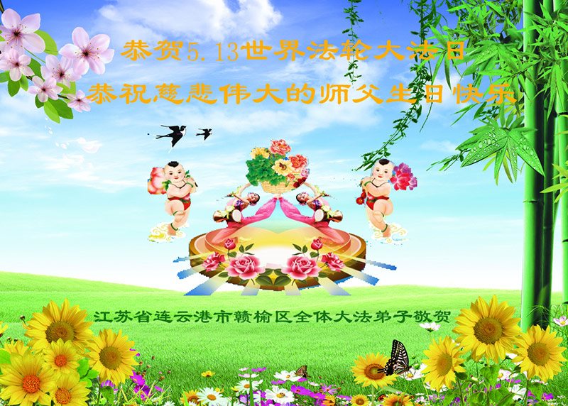 江苏省连云港市赣榆区大法弟子普天同庆世界法轮大法日!恭贺师尊生日快乐!