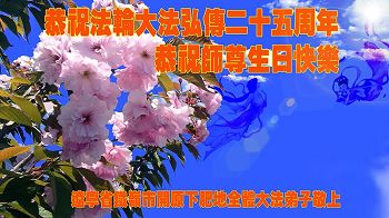 山东省淄博市张店区大法弟子恭祝师尊生日快乐!庆祝法轮大法洪传二十五周年!