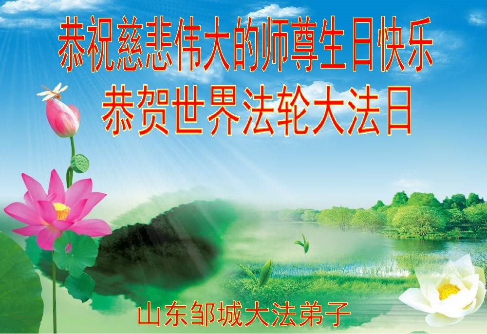 山东邹城大法弟子恭祝师尊生日快乐!恭贺世界法轮大法日!
